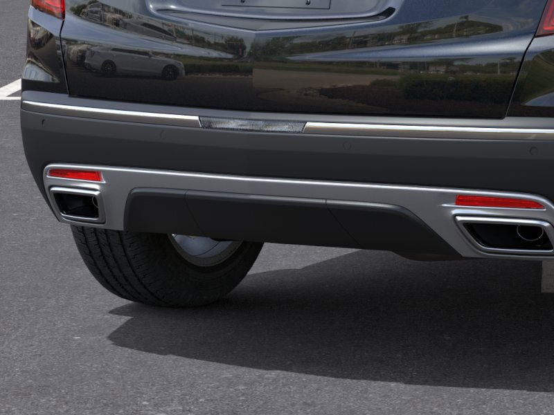 - Opens or closes when the system senses the key fob and the driver extends their foot under the left-hand side of the rear bumper over an image of the Cadillac Crest projected under the vehicle