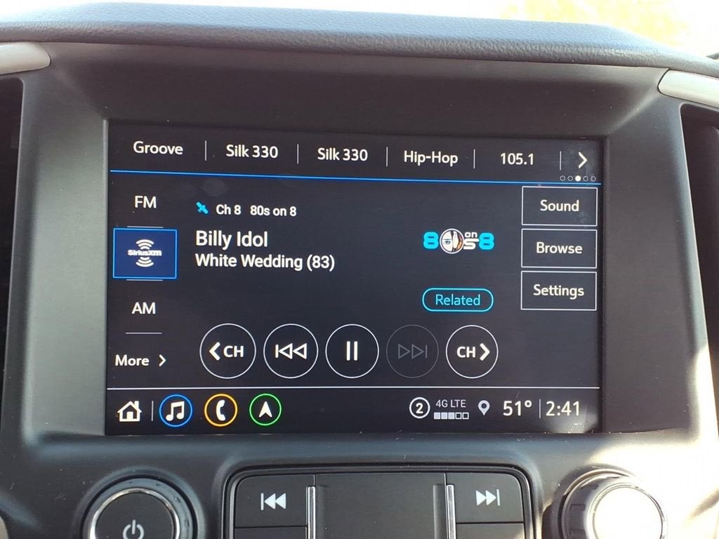 - 8" diagonal GMC Infotainment System with Navigation, includes multi-touch display, AM/FM/SiriusXM1 radio
